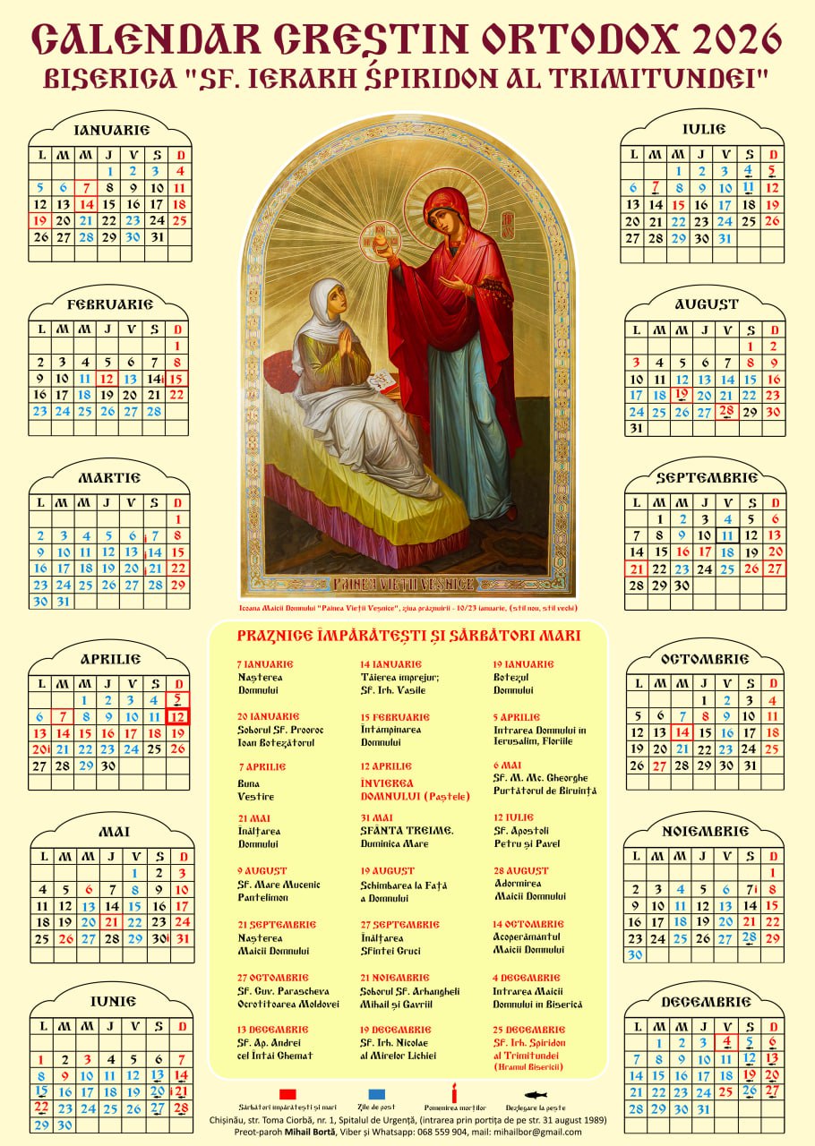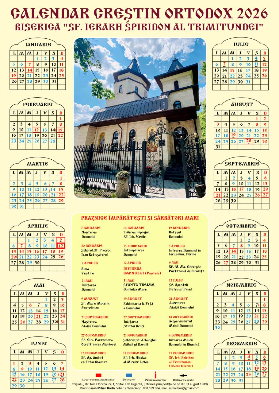 Toți cei care doresc să primească gratuit calendarul sunt invitați să se apropie la biserică.