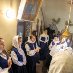 Răspunsurile liturgice au fost oferite de corul mixt al Bisericii „Sfântul Ierarh Spiridon al Trimitundei”, sub conducerea presbiterei Magdalena, care a interpretat cântări alese, închinate Sfântului Spiridon.