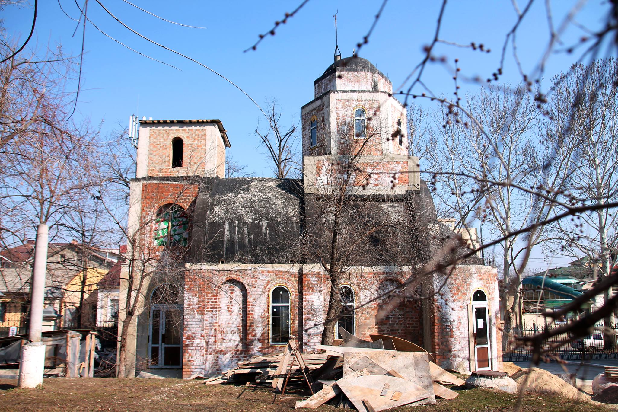 Mușcatele vesele și bogate în flori din curtea bisericii Sf. Ierarh Spiridon din Chișinău